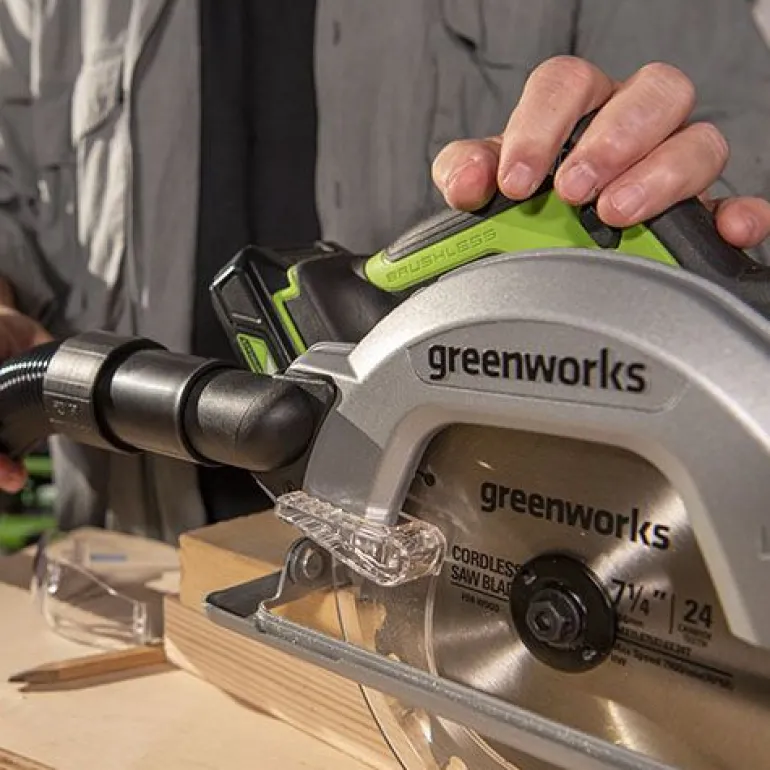 Główną zaletą tego urządzenia jest innowacyjny silnik. Jest to pierwsza pilarka Greenworks 24V z silnikiem bezszczotkowym. Bez szczotek narzędzie wytrzyma o 40% dłużej niż jego szczotkowy odpowiednik. Ponadto, ze względu na brak tarcia szczotki, moc narzędzia jest zwiększona, a wibracje zmniejszone, dzięki czemu praca z nim jest wygodniejsza.