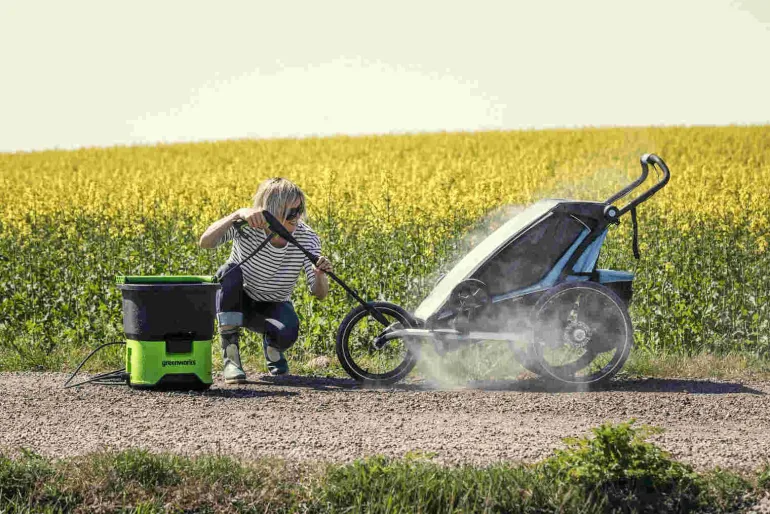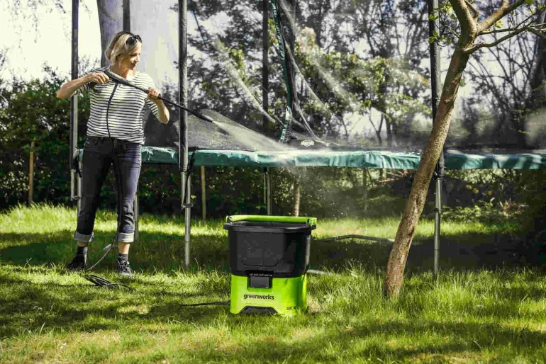 Od czyszczenia grilla po czyszczenie rowerów, przenośna myjka ciśnieniowa Greenworks o ciśnieniu 70 barów, została zaprojektowana do wszechstronnego, funkcjonalnego i praktycznego zastosowania w wygodny sposób. Jest lekka i posiada wbudowany silnik oraz zbiornik na wodę o pojemności 20 l.