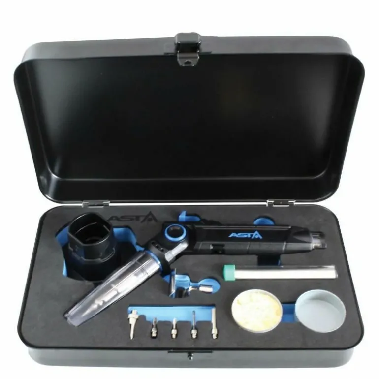 Urządzenie przystosowane do lutowania, wypalania w drewnie, stapiania, kurczenia, skrawania na gorąco, a także do usuwania farby. Przyrząd ten łączy szeroki zakres zastosowań w jednym urządzeniu, dzięki możliwości zastosowania siedmiu wymiennych końcówek oraz możliwość regulowania korpusu po katami 5o, 45o, 90o umożliwi wszechstronne zastosowanie i szeroki zakres prac. Uniwersalne: jedno narzędzie dla siedmiu różnych zastosowań. Zasilane ciekłym gazem butanowym.Bardzo krótki czas nagrzewania oraz szybkie doładowanie. Zabezpieczenie przed dziećmi: dzieci nie uruchomią narzędzia. Precyzyjna możliwość wykonywania w skomplikowanych prac. Uniwersalne: jedno narzędzie dla siedmiu różnych zastosowań.Zasilane ciekłym gazem butanowym. Bardzo krótki czas nagrzewania oraz szybkie doładowanie. Zabezpieczenie przed dziećmi: dzieci nie uruchomią narzędzia. Precyzyjna możliwość wykonywania w skomplikowanych prac