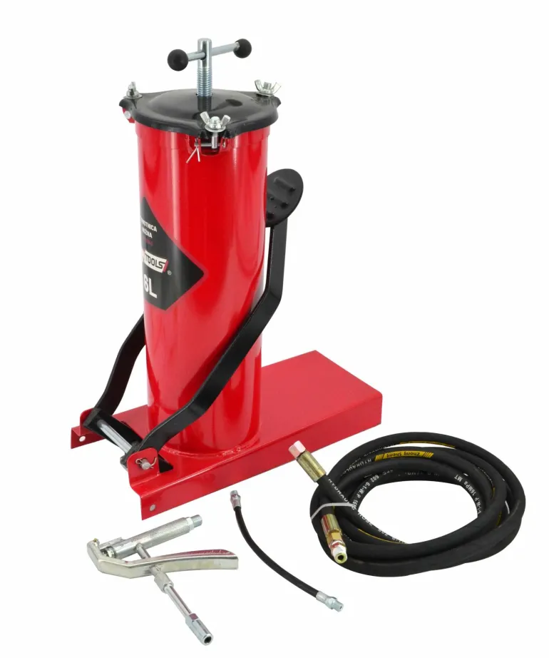 Pistolet z zamontowanym elastycznym wężykiem ze standardową końcówką do której pasuje większość kalamitek.