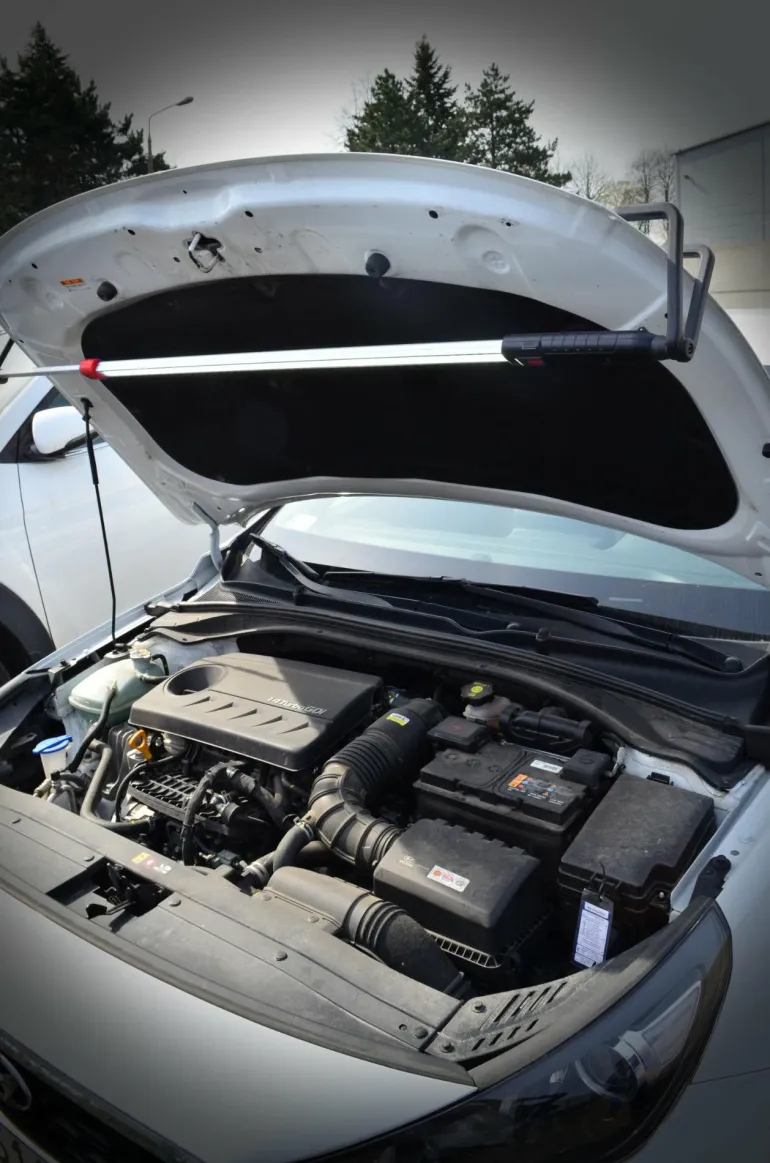 Zakończona haczykami w gumowych osłonach, które zabezpieczają lakier auta przed porysowaniem.