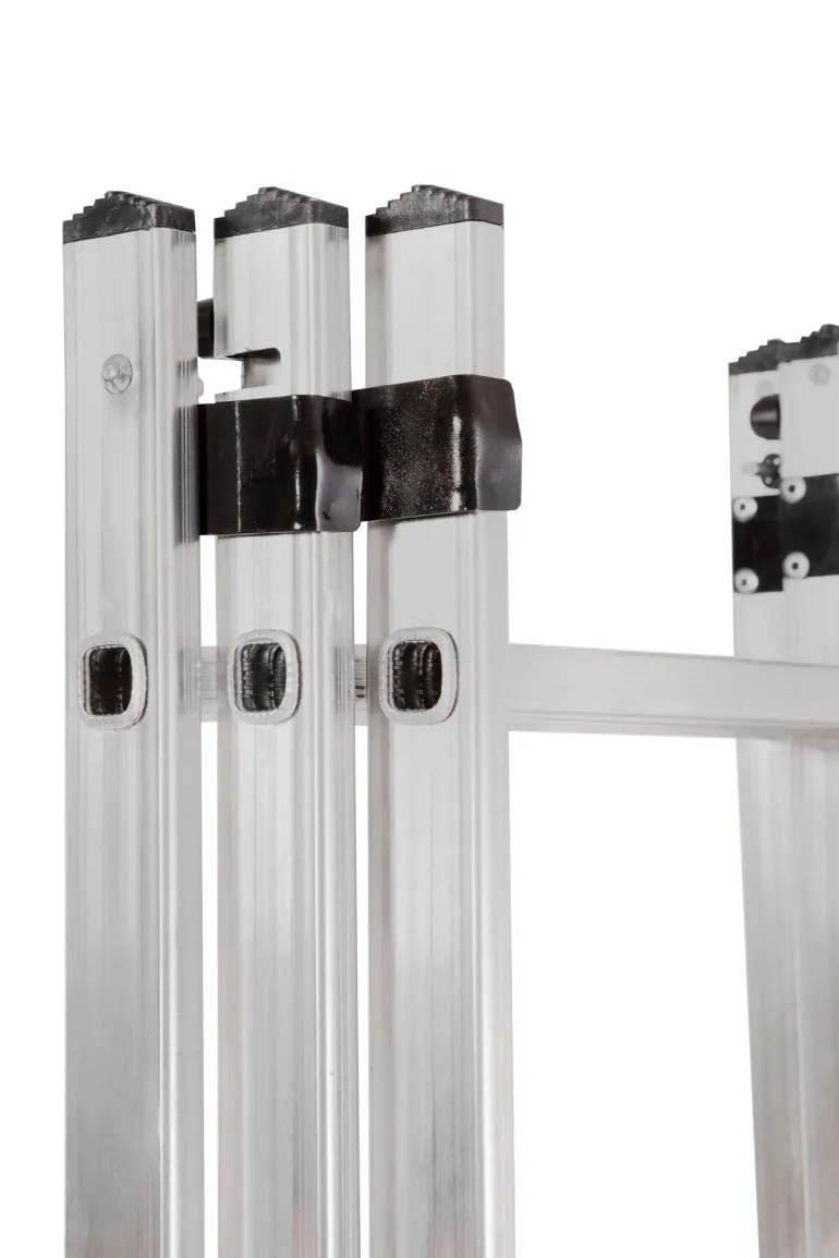 Mocne pasy polipropylenowe zapobiegają przed nadmiernym rozstawieniem drabiny.