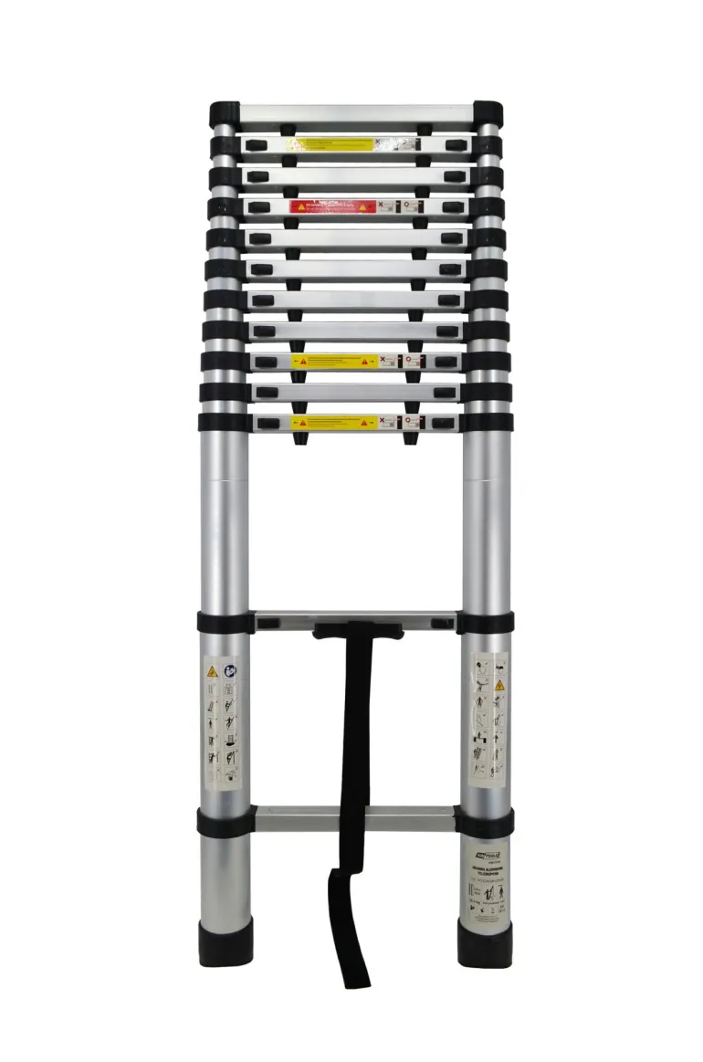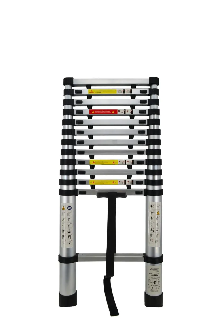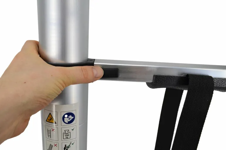 Mocny i wytrzymały pasek zabezpiecza drabinę przed rozłożeniem podczas przenoszenia.