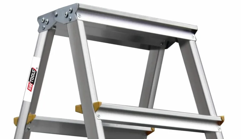 Lekka i wytrzymała drabina domowa, wykonana z aluminium, tłoczona.
