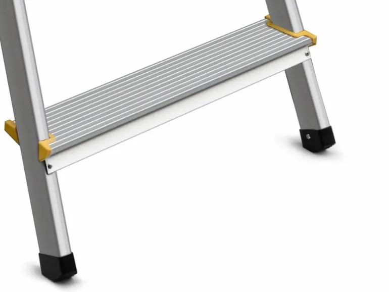 Antypoślizgowe, żebrowane stopnie są mocno przymocowane do bocznych podłużnic dla lepszej stabilności.