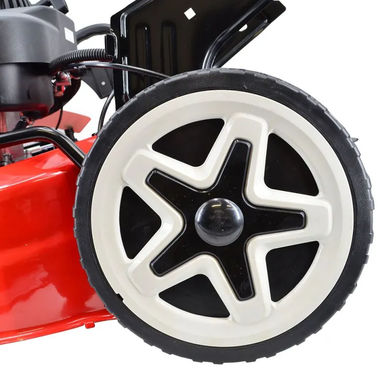 Duże koła z łożyskami kulkowymi gwarantują łatwe poruszanie się po trawie lub nierównym terenie.