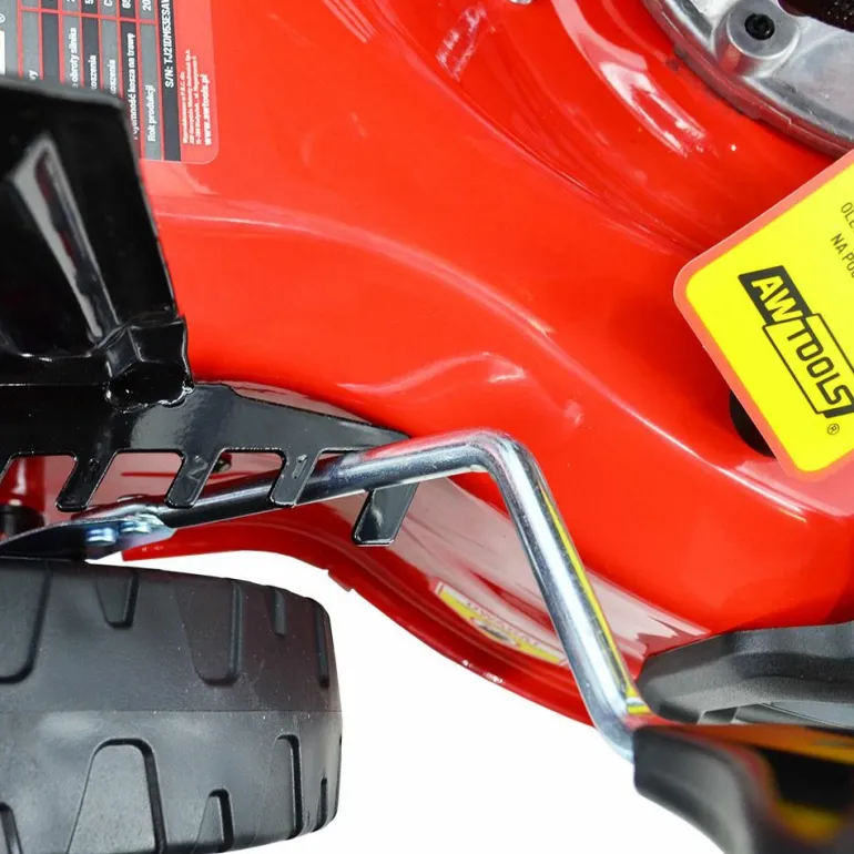 Boczna dźwignia regulacji wysokości cięcia trawy.