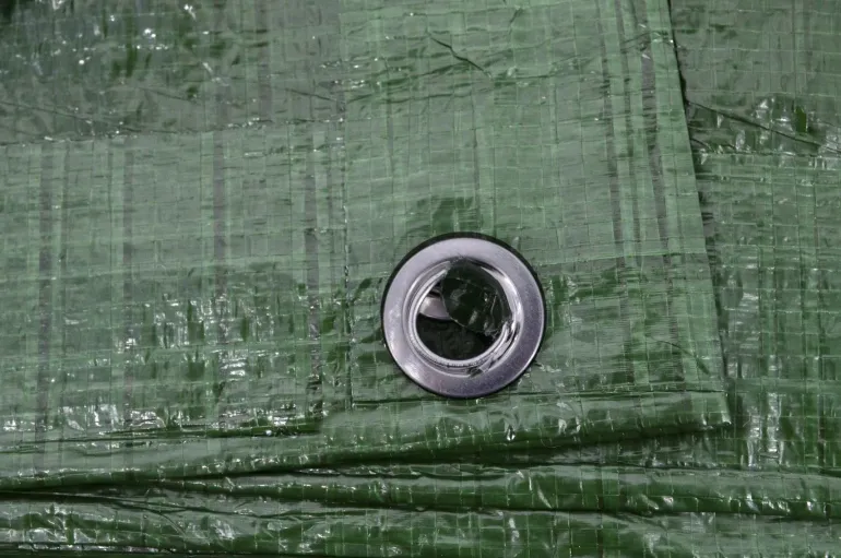 Krawędzie zgrzewane na gorąco z aluminiowymi oczkami mocującymi co 1m oraz wzmocnione sznurkiem dla maksymalnej wytrzymałości przed wiatrem i deszczem.