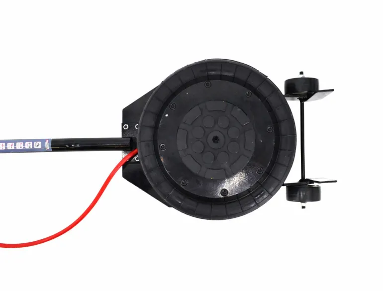 Wyposażony w 2 duże kółka z tworzywa zapewniają płynną manewrowość.