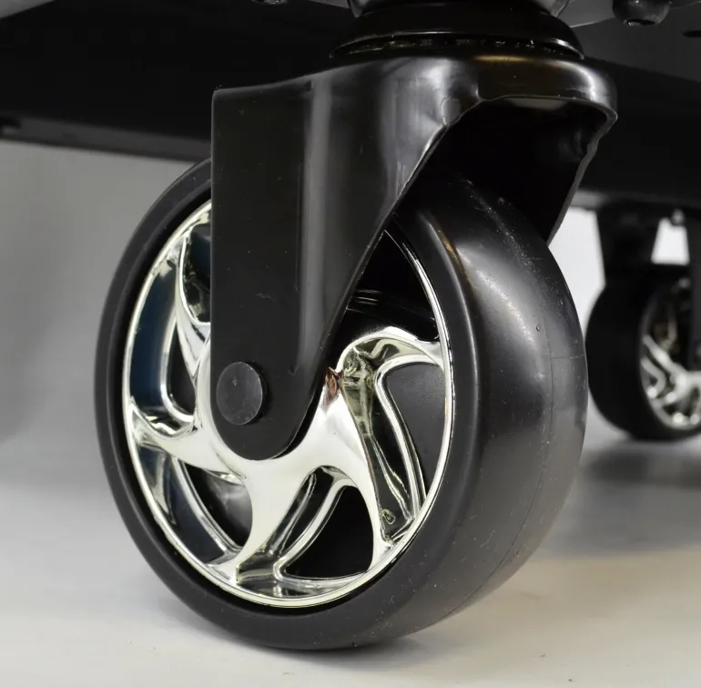 2 obrotowe kółka z hamulcem oraz 2 stałe.