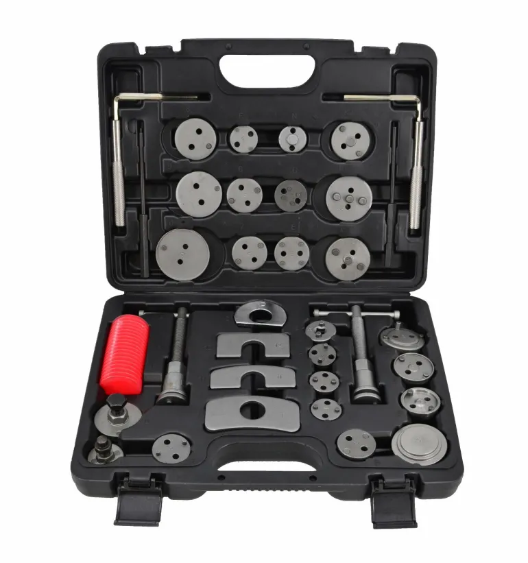 Zestaw separatorów do zacisków hamulcowych z napędem ręcznym do obsługi zacisków wciskanych (przednie hamulce) oraz wkręcanych (tylne hamulce).