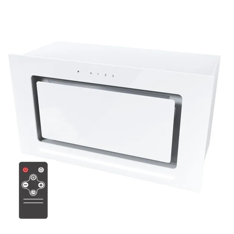 Okap kuchenny do pełnej zabudowy. Występuje w dwóch rozmiarach 52 oraz 72 cm. Wykonany ze stali oraz szkła. Oświetlenie – listwa LED o mocy 6W. Możliwość pracy jako wyciąg lub pochłaniacz. Sterowany dotykowo oraz za pomocą pilota dodanego w zestawie.