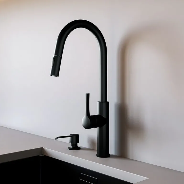 Czarna bateria kuchenna z wyciąganą wylewką