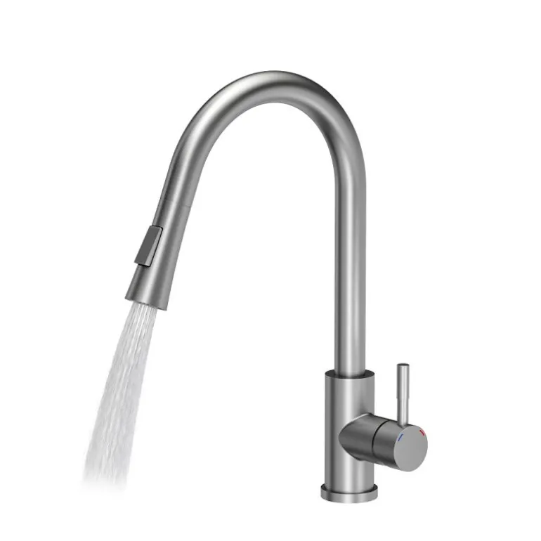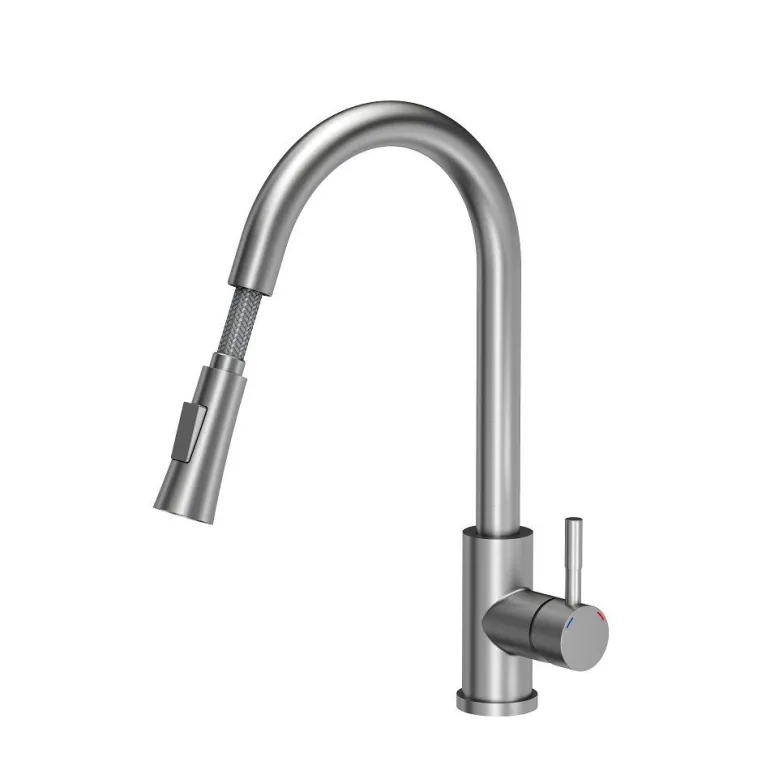 JULIA SteelS stalowa bateria kuchenna z wyciąganą wylewką i prysznicem