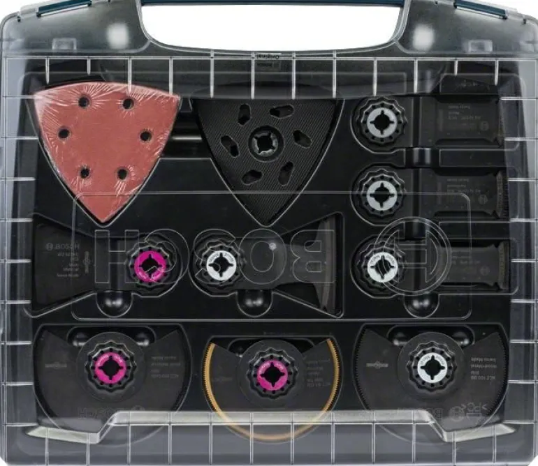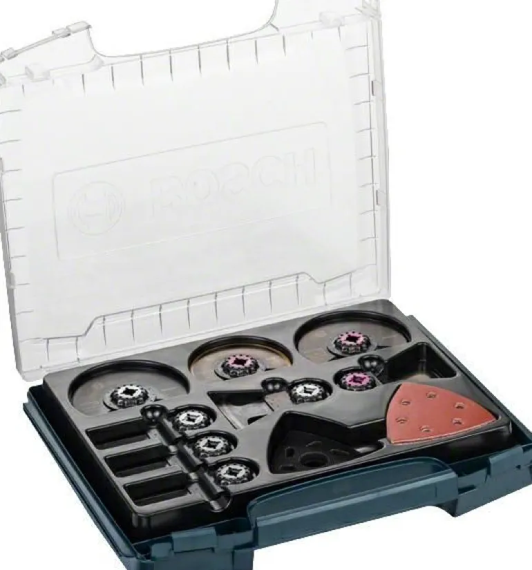 Zestaw zawiera akcesoria Starlock do piłowania, cięcia wgłęb., szlifowania, skrobania i przycinania różnych materiałów