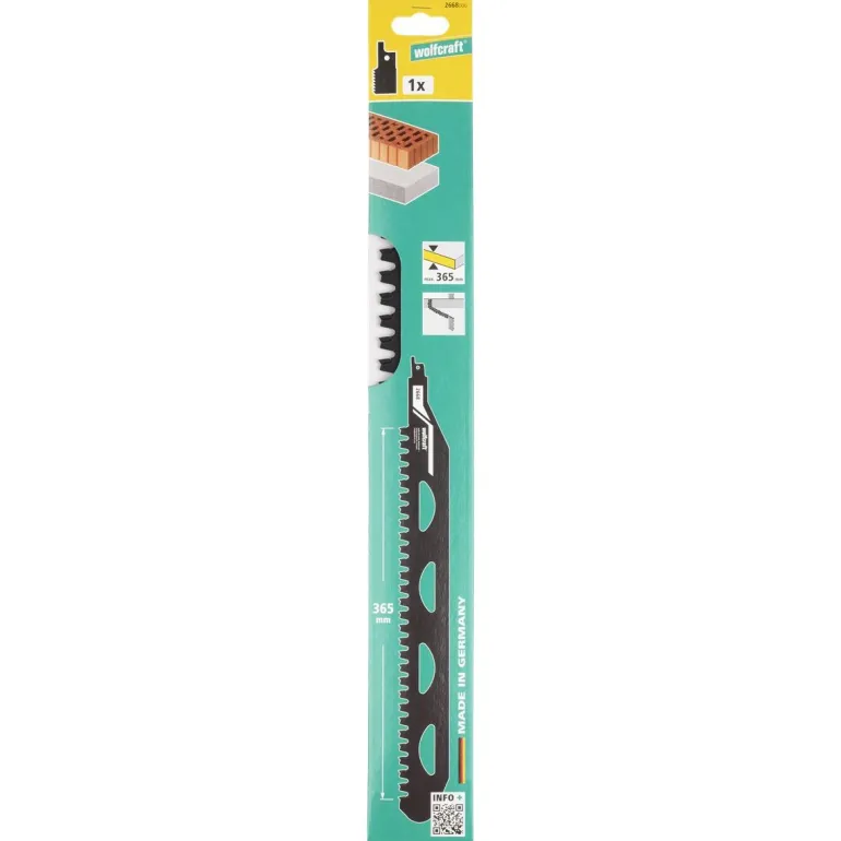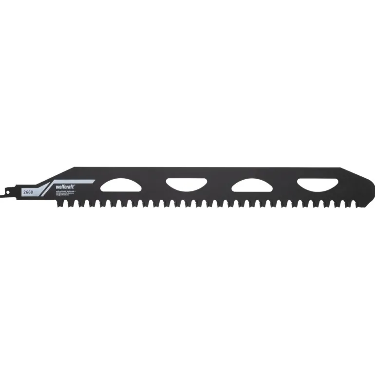 Ostrze wykonane z hartowanej stali HCS i pokryte węglikiem spiekanym zapewnia długą żywotność i wysoką odporność na ścieranie. Głębokość cięcia do 365 mm pozwala na cięcie całych bloczków betonu komórkowego, a duży rozstaw zębów 13 mm gwarantuje szybkie tempo pracy i mniejsze pylenie. Brzeszczot zapewnia precyzję przy prostych, zgrubnych cięciach – bez zbędnych komplikacji.