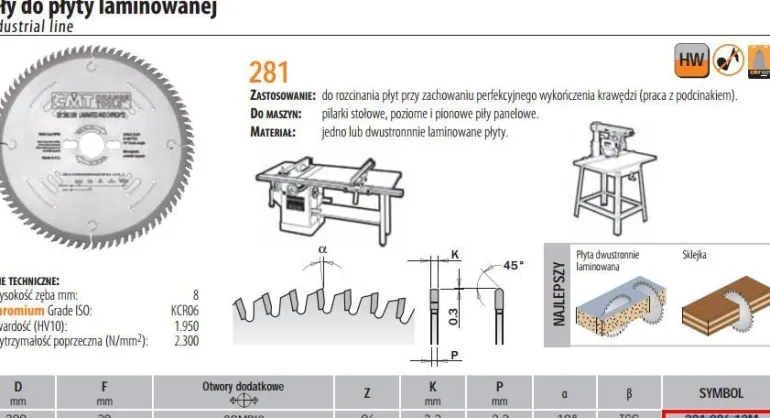 ZASTOSOWANIE: do rozcinania płyt przy zachowaniu perfekcyjnego wykończenia krawędzi (praca z podcinakiem).