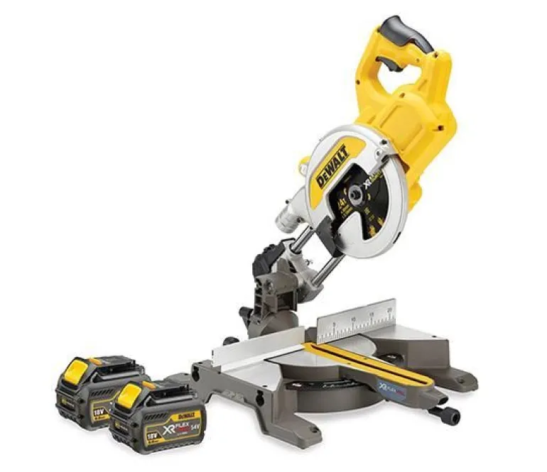 Akumulatorowa pilarka ukosowa 54V DCS777T2 DeWalt jest innowacyjnym urządzeniem, gdyż zasila je nowy akumulator litowo-jonowy Flexvolt XR o napięciu 54V.