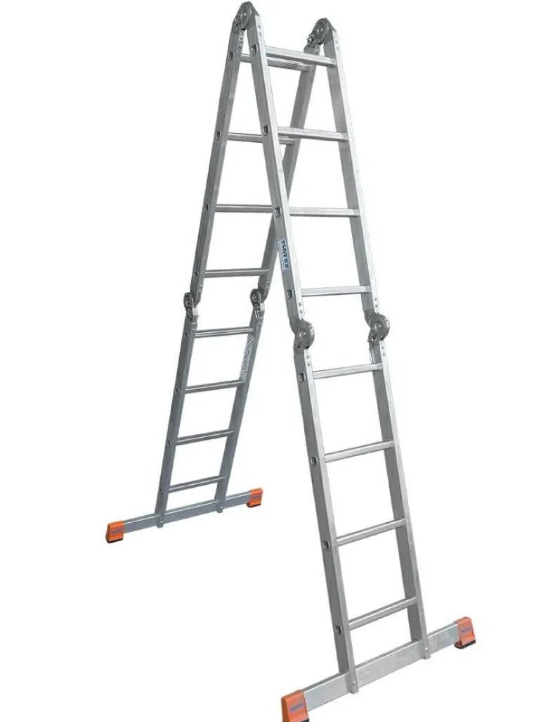 Zapadkowe przeguby bezpieczeństwa z dźwignią, łączą ze sobą gotowe elementy drabiny i umożliwiają rozstawianie jej w literę A jako drabinę rozstawną. Rozkładając wszystkie elementy drabiny w jedną linię, uzyskujemy duży zasięg roboczy w pozycji przystawnej.