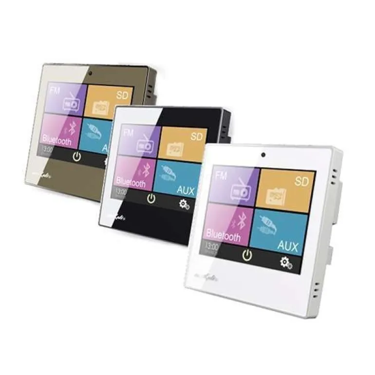 Dotykowy panel ścienny z wbudowanym wzmacniaczem stereo 2x 10W, tunerem fal radiowych FM(pamięć 30 stacji) ; pilota zdalnego sterowania na podczerwień, którym można sterować wszystkimi funkcjami urządzenia bez konieczności przemieszczenia się. Dzięki wbudowanemu gniazdu AUX do wzmacniacza można wprowadzić dowolny sygnał liniowy np z TV