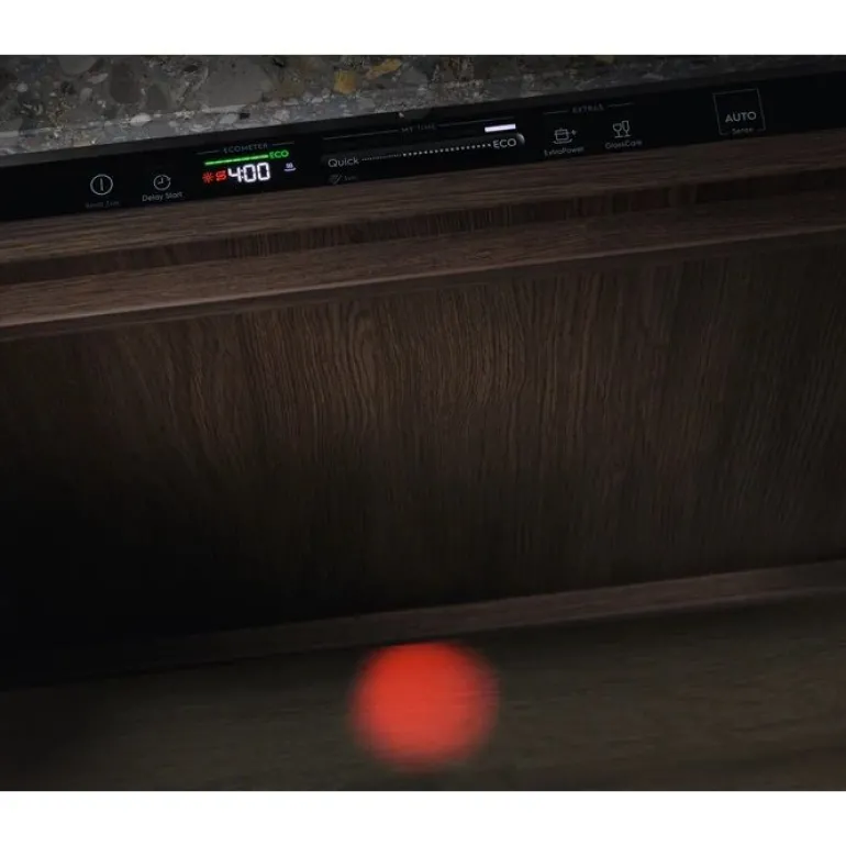 - Beam on floor – dwukolorowy wskaźnik pracy zmywarki wyświetlany na podłodze