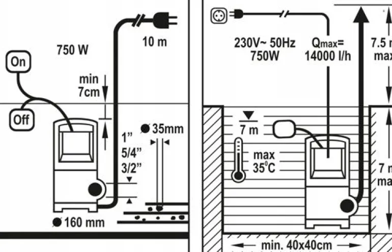 Wyłącznik pływakowy zapewnia automatyczne włączanie przy osiągnięciu określonego poziomu cieczy i wyłączanie przy spadku poziomu pod dopuszczalną granicę.