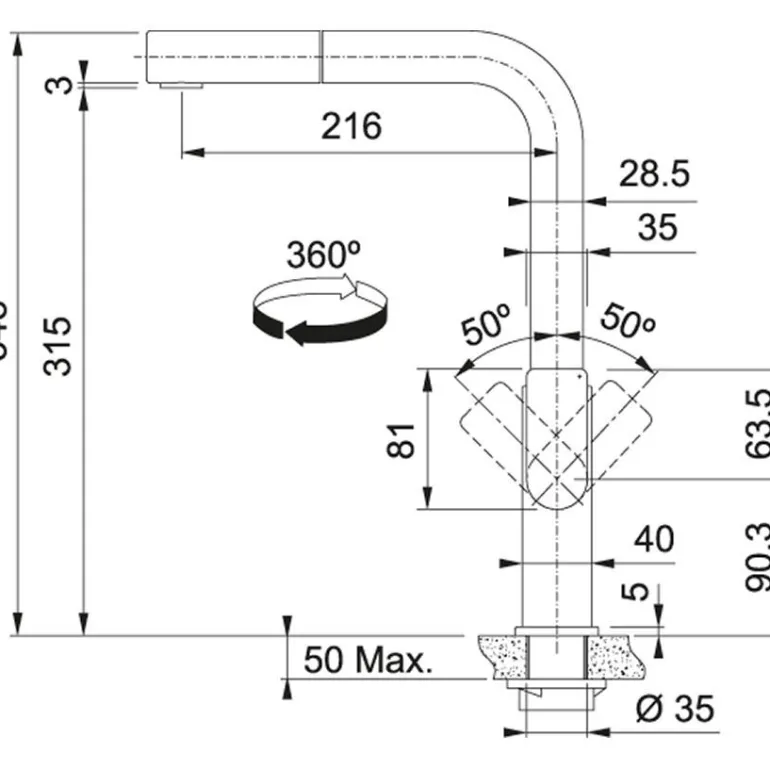 Wysokość do końca wylewki 315.00 mm