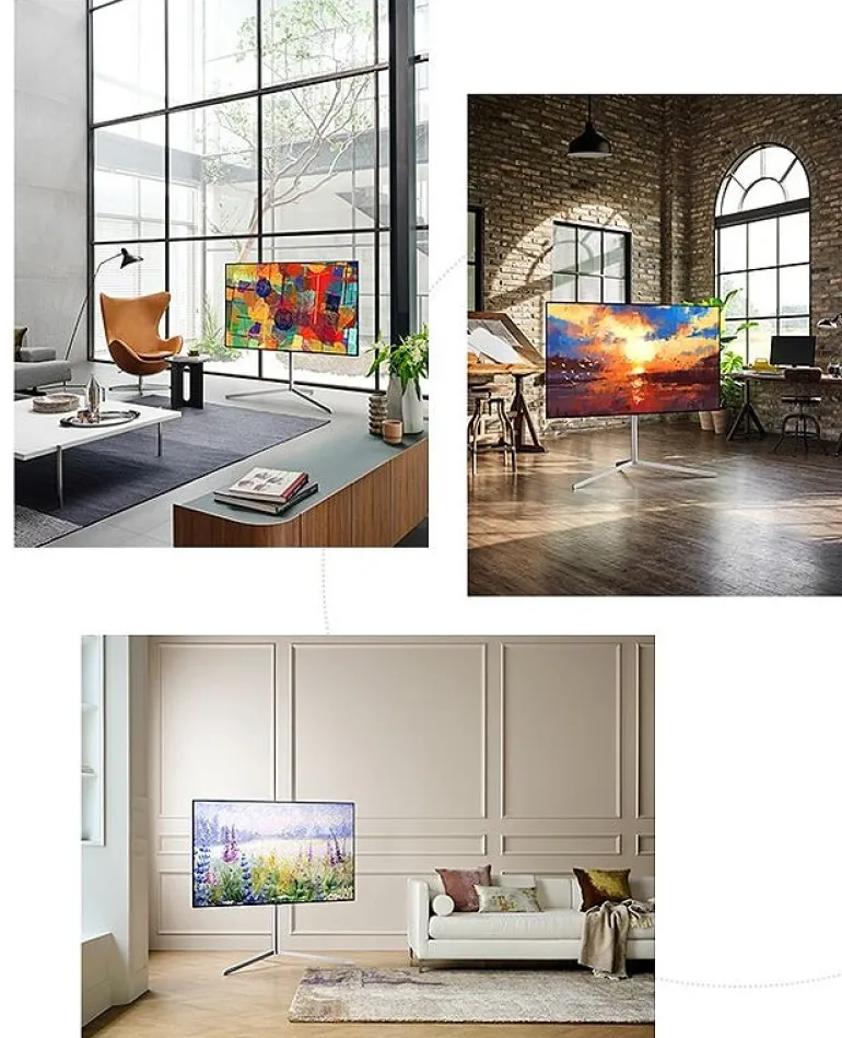 Ponadto system zarządzania przewodami został zaprojektowany tak, aby zachować ekskluzywny wygląd telewizora i zmienić pomieszczenie w galerię sztuki.