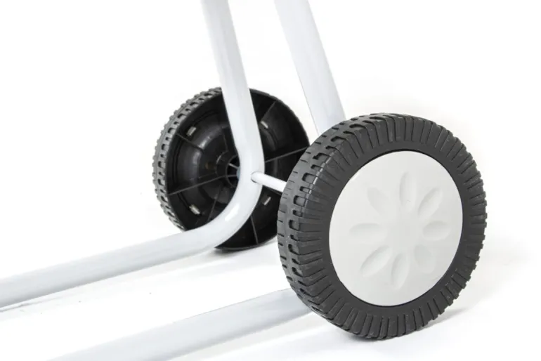 Rozdrabniacz Gardyer R600 jest wyposażony w praktyczne koła ułatwiające transport, co umożliwia łatwe przemieszczanie się po obszarze ogrodu. Worek na rozdrabniany materiał o pojemności około 50 litrów sprawia, że zbieranie i usuwanie odpadów staje się prostsze i bardziej ergonomiczne.
