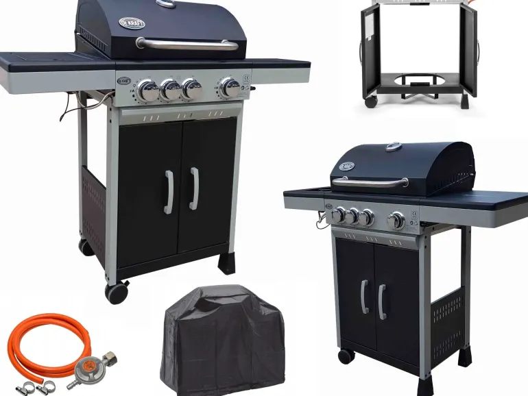 GRILL GAZOWY DEKRAFT 3+1 PALNIKI RUSZT ŻELIWNY + POKROWIEC