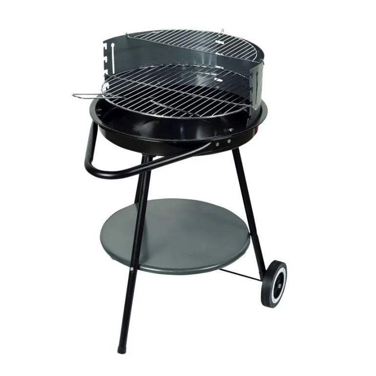 Kółka transportowe oraz rączka pozwolą wygodnie manewrować i ustawić grilla w wybranym miejscu a dolna półka umieszczona pod rusztem, przyda się do odstawienia naczyń lub akcesoriów.
