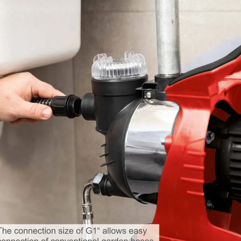 - Bezpieczeństwo: Wyjmowany filtr wstępny i wbudowany manometr zwiększają bezpieczeństwo użytkowania i chronią pompę przed uszkodzeniami.