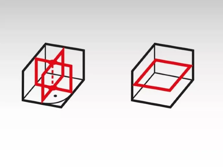 - Dokładny transfer punktów znacznika w trakcie robót instalacyjnych – wyrównywanie obejm rurowych względem siebie w poziomie i w pionie, szybkie ustawianie i błyskawiczny montaż przewodów i rur grzewczych.