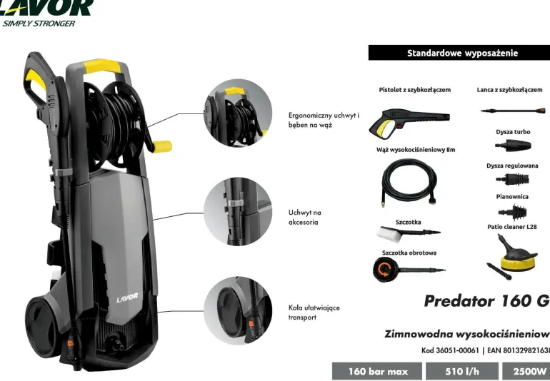 Predator 160 + pistolet, lanca, dysza TURBO, dysza regulowana,