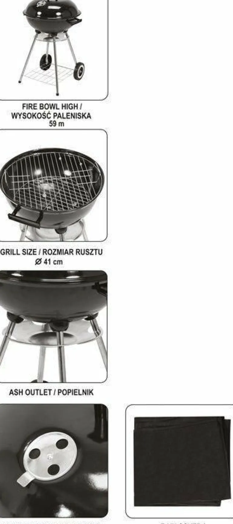 Węglowy grill ogrodowy okrągły z pokrywą zawiera: