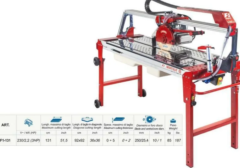 Nowa linia Maszyn Chłodzonych Wodą Brooklyn F1 firmy MONTOLIT idealnie współgra pomiędzy mocnym silnikiem (2,2 kW) i diamentową tarczą o średnicy (250 mm ), co gwarantuje wysoką wydajność.