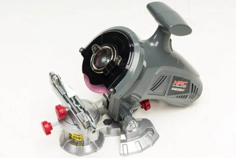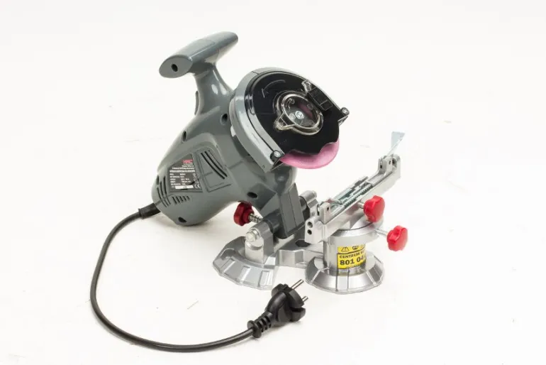 Wyposażona w możliwość regulacji kąta ostrzenia, przechylane i obracane imadło, ogranicznik głębokości szlifu oraz regulowaną osłonę na tarczę