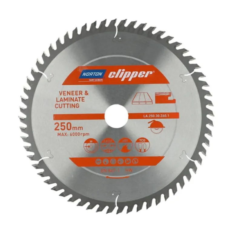 – Super ostre, wysokiej jakości tarcze z węglika spiekanego Norton Clipper zapewniają wyjątkową trwałość i wydajność dla idealnie wykończonej krawędzi. Niezależnie od tego, czy chcesz ciąć płyty melaminowane, sklejkę, panele laminowane czy płyty HPL.