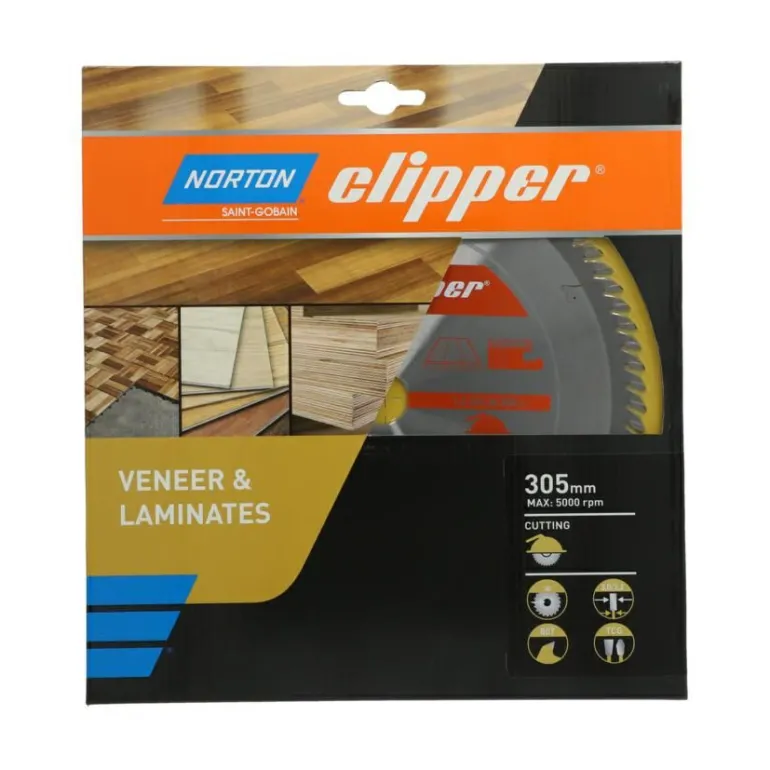 – Super ostre, wysokiej jakości tarcze z węglika spiekanego Norton Clipper zapewniają wyjątkową trwałość i wydajność dla idealnie wykończonej krawędzi. Niezależnie od tego, czy chcesz ciąć płyty melaminowane, sklejkę, panele laminowane czy płyty HPL.