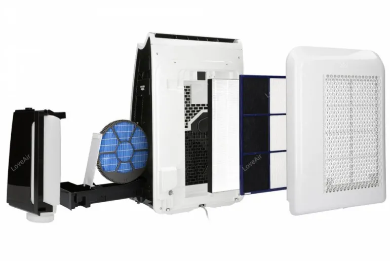Czterostopniowy system oczyszczania: filtr wstępny, filtr HEPA H13, filtr węglowy z aktywnym węglem i sorbentem krzemionkowym oraz generator jonów w technologii Plasmacluster