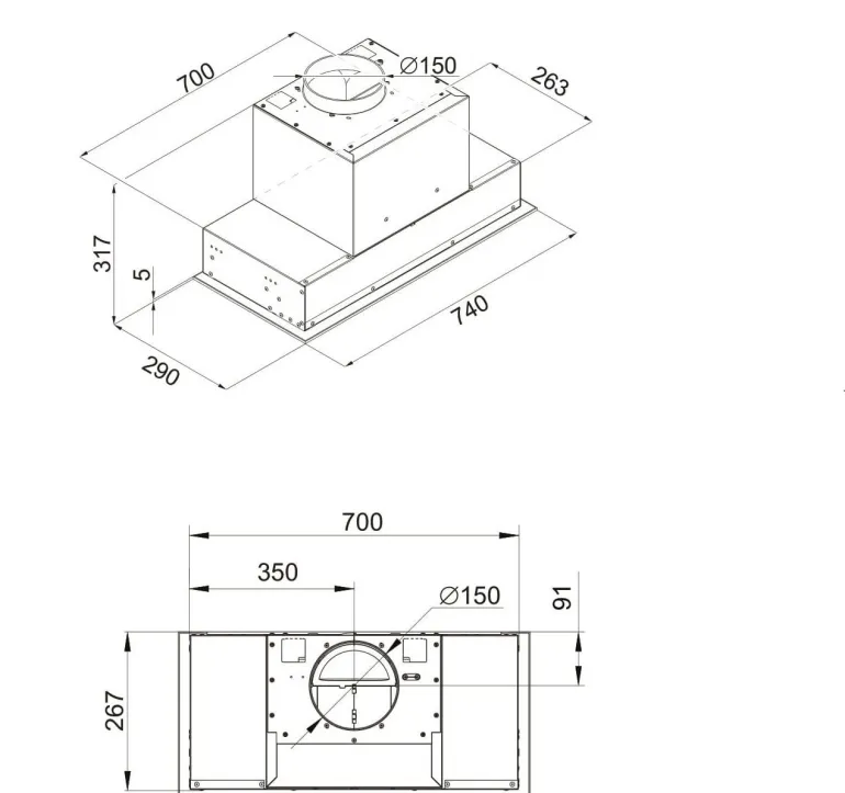 - Schowany w szafce okap jest cichy (46 dB na pierwszym biegu), a więc nie powoduje dyskomfortu wśród osób przebywających w kuchni.