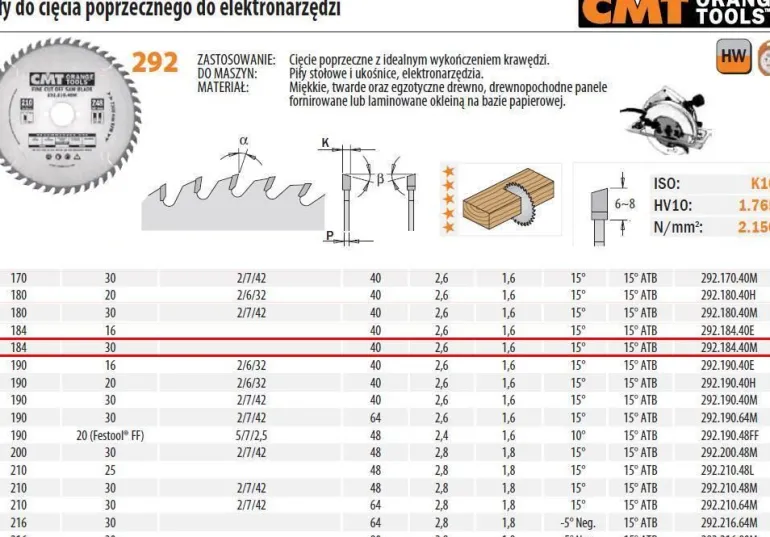 PIŁA DO CIĘCIA POPRZECZNEGO, OBRÓBKA WYKAŃCZAJĄCA HM 184x30x2,6/1,6 Z=40