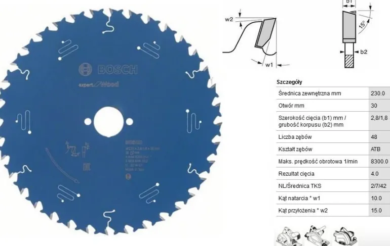 Tarcza pilarska Expert for Wood 230 x 30mm 48z (2608644063).