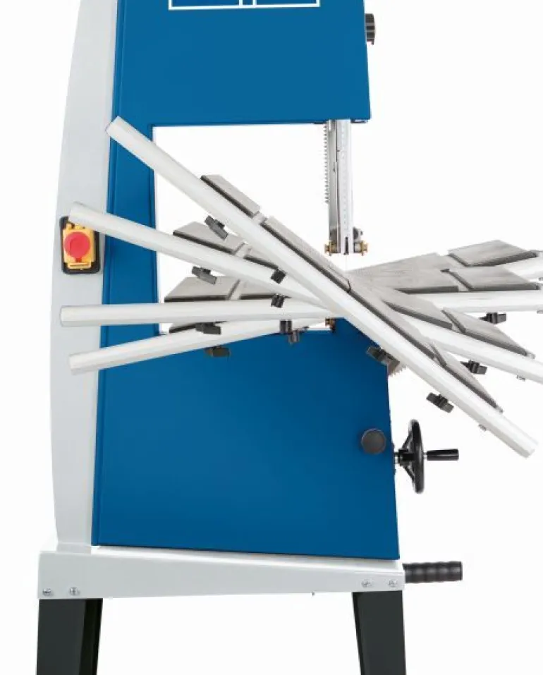 – Precyzyjny ogranicznik wzdłużny z lupą, używany z lewej i prawej strony piły taśmowej