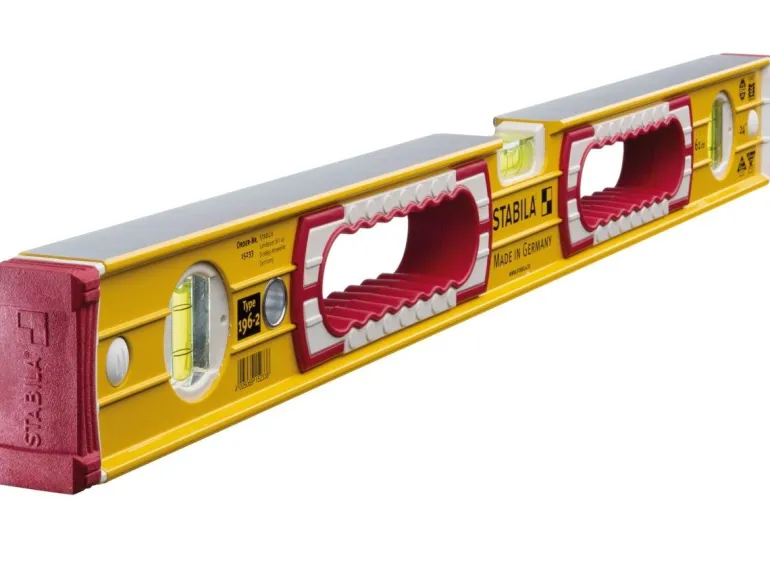 Na budowie poziomnica jest silnie obciążana, często może się też zdarzyć, że spadnie. Dlatego tym bardziej istotne jest, aby nawet poddawana codziennym obciążeniom zapewniała równie dokładny pomiar jak pierwszego dnia. Dwie libelle pionowe umożliwiają odczyt w każdej pozycji. Oprócz tego dwa uchwyty przelotowe zapewniają niezawodny chwyt. Wytrzymały, wzmacniany profil prostokątny z aluminium oraz technologia montażu STABILA z zalewaną na stałe libellą sprawiają, że urządzenie to staje się perfekcyjnym partnerem w trudnych zadaniach budowlanych. Poziomnice firmy STABILA: precyzja na całe życie.