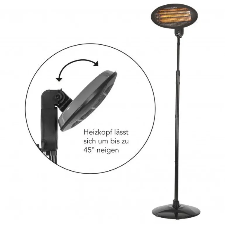 Dzięki promiennikowi podczerwieni „MAXXMEE” natychmiast poczujesz ciepło bez długiego czasu nagrzewania. Do wyboru są trzy poziomy grzania: 600, 1300 lub 2000 watów. Emitowane ciepło podczerwieni zapewnia przytulne godziny w zimną noc. Głowicę grzewczą można odchylić do 45°, a wysokość drążka teleskopowego można regulować w zakresie ok. 180-210 cm. Stabilna podstawa promiennika podczerwieni zapewnia również bezpieczne użytkowanie. Z praktycznym zarządzaniem kablami.