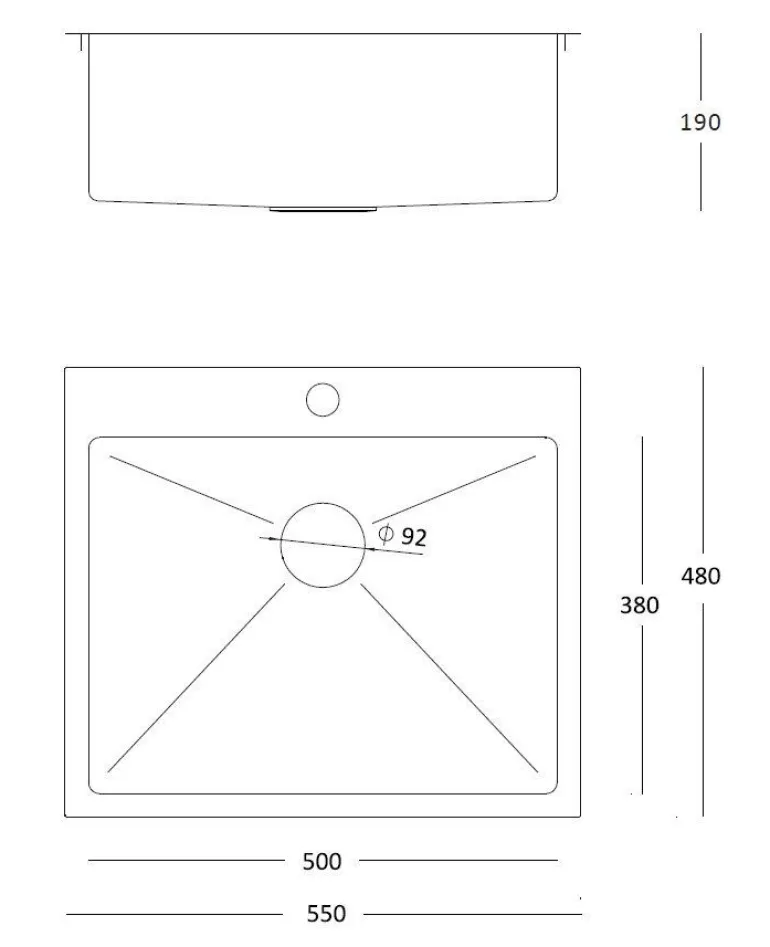 - Wymiar zlewozmywaka: 550 mm x 480 mm x 190