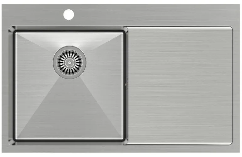 Klasyczny wzór w nowoczesnej odsłonie. Jednokomorowy zlewozmywak Quadron Russel 111 z ociekaczem, wykonany ze stali szlachetnej (SteelQ) szczotkowanej. Jeden z nielicznych na rynku polskim zlewozmywak z wygłuszoną komorą i stosunkowo dużą głębokością (190mm). Jednym słowem koniec z hałasem i uciążliwym myciem większych elementów wyposażenia kuchni. Montaż wymaga głębszej podbudowy (550mm) ponieważ pod ociekaczem znajduje się wspornik.