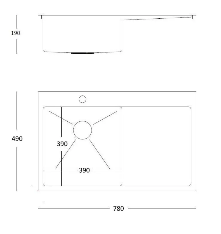 - Wymiar zlewozmywaka: 780 mm x 490 mm x 190