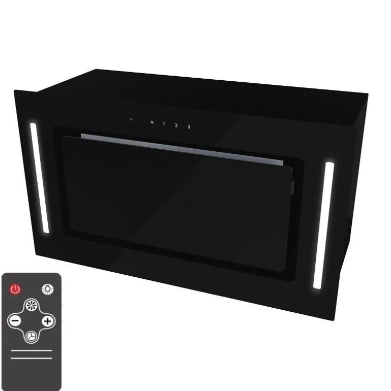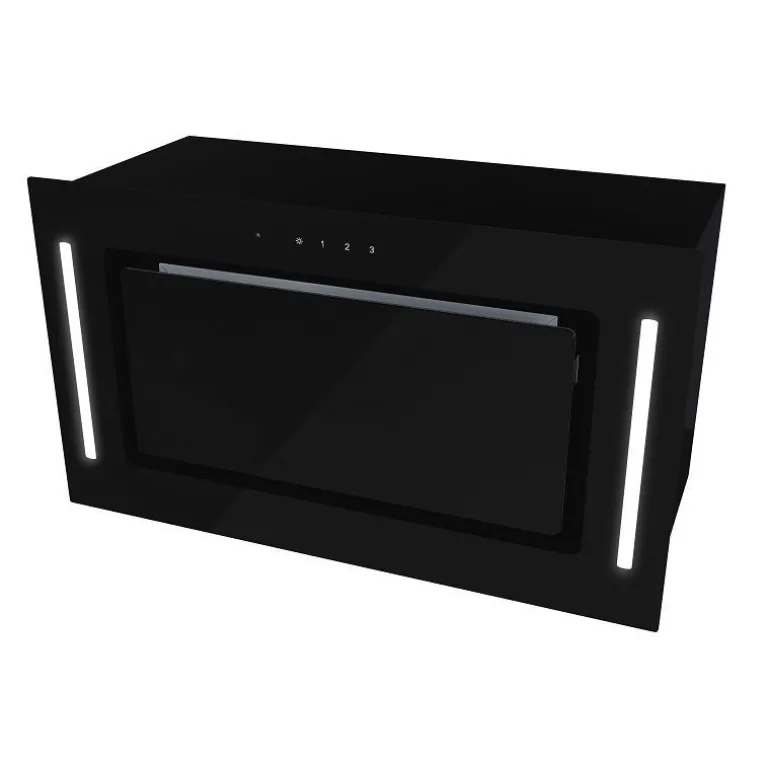 Okap kuchenny do pełnej zabudowy. Występuje w dwóch rozmiarach 52 oraz 72 cm. Wykonany ze stali oraz szkła. Oświetlenie – dwie listy LED o łącznej mocy 6W. Możliwość pracy jako wyciąg lub pochłaniacz. Sterowany dotykowo oraz za pomocą pilota dodanego w zestawie.